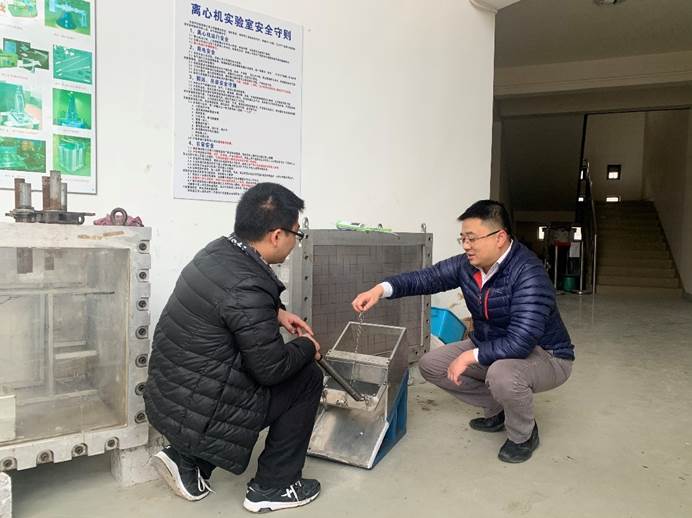 黃雨等正在調試地質災害防治物理模擬試驗裝置