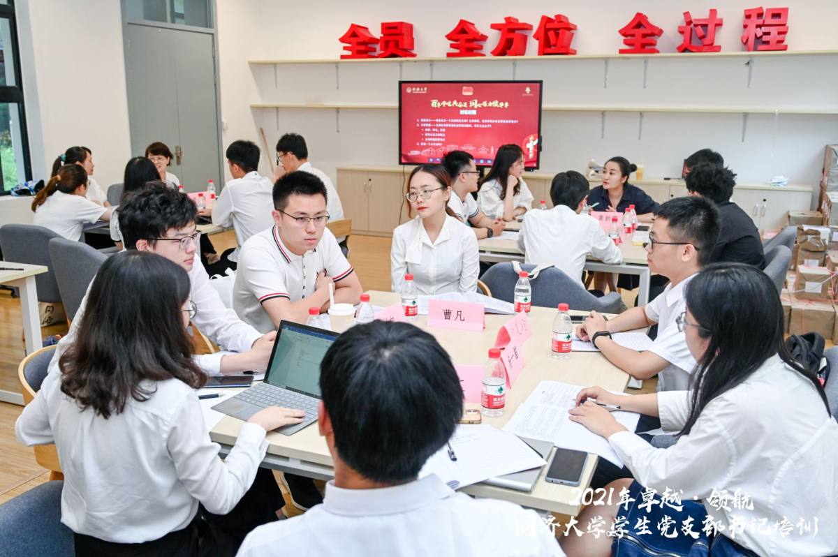 會后,全體學生黨支部書記及部分輔導員代表參加了“卓越·領航”學生黨支部書記培訓。學研工部負責人作了題為《學習百年黨史 汲取奮進力量》的主旨報告。報告圍繞“學史:上好正心修身的必修課”“知時:把握時代發(fā)展的坐標軸”和“銘使:磨礪敢于擔當?shù)蔫F肩膀”三個方面展開,勉勵支部書記們做一個合格的支部書記,認真學習黨史,從黨史中汲取智慧和力量,帶領學生一起走好新時代的長征路。隨后,與會人員通過“先鋒領學,分組研討”的形式,認真學習貫徹《中國共產(chǎn)黨普通高等學校基層組織工作條例》,圍繞先鋒模范作用、黨員發(fā)展及教育、黨性修養(yǎng)、黨支部建設、黨史學習教育等議題展開分組討論,交流支部創(chuàng)建經(jīng)驗。
