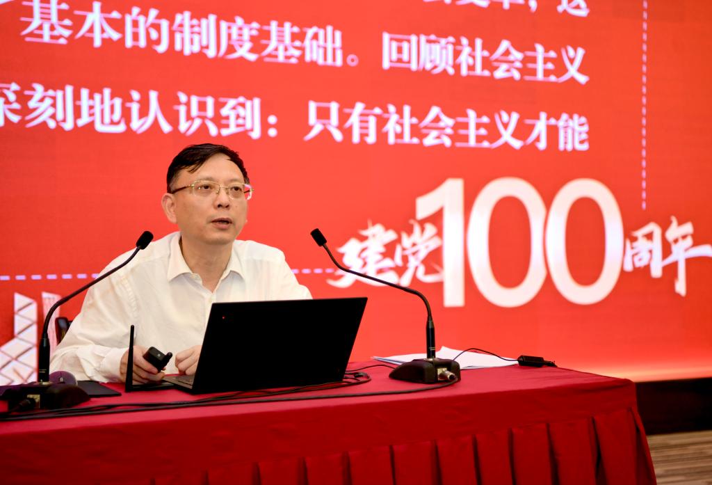 這堂黨課主要包括三個(gè)方面的內(nèi)容:一是深入學(xué)習(xí)領(lǐng)會習(xí)近平總書記關(guān)于學(xué)習(xí)黨的歷史的重要論述;二是黨的百年光輝歷程與黨領(lǐng)導(dǎo)下的同濟(jì)大學(xué);三是以黨史學(xué)習(xí)教育實(shí)際成效慶祝建黨一百周年。