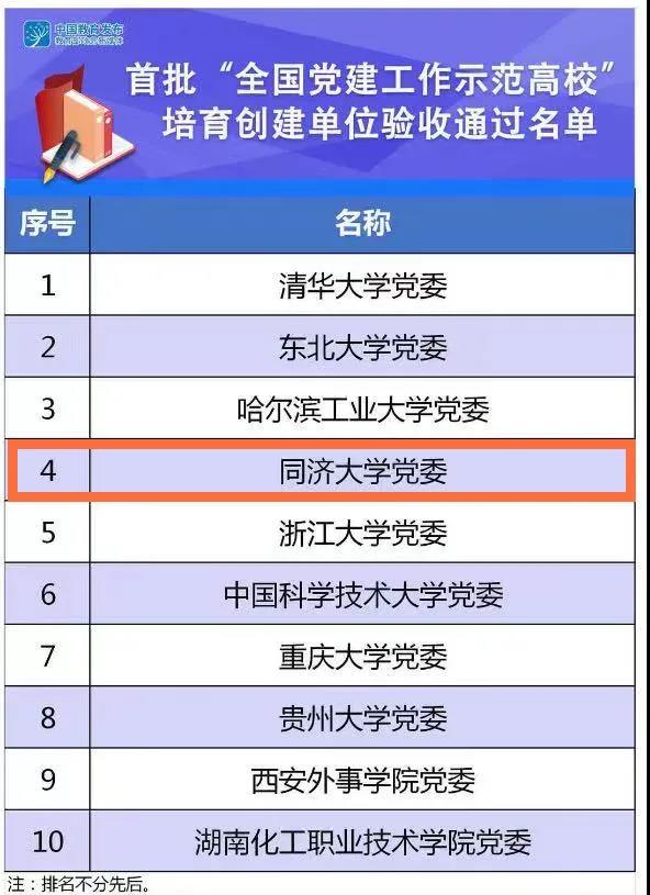 近日,教育部公布首批全國黨建工作示范高校、標桿院系、樣板支部培育創建單位驗收通過名單,共有10個高校黨委、98個院系黨組織、551個黨支部通過驗收。同濟大學黨委通過首批“全國黨建工作示范高校”培育創建單位驗收,建筑與城市規劃學院黨委通過“全國黨建工作標桿院系”培育創建單位驗收,土木工程學院建筑工程系教工第一黨支部、附屬同濟醫院門急診黨支部通過“全國黨建工作樣板支部”培育創建單位驗收。