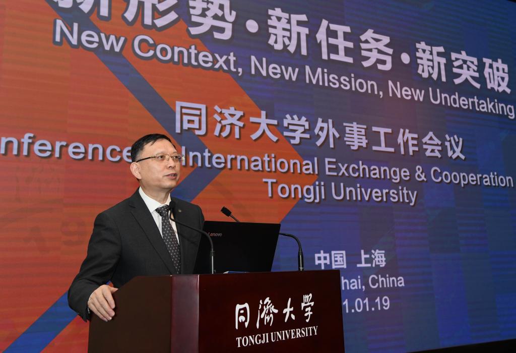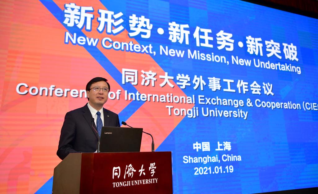 1月19日,同濟大學召開外事工作會議,以“新形勢·新任務·新突破”為主題,全面回顧同濟大學“十三五”國際化辦學成就,謀劃部署“十四五”國際合作與交流,努力構建后疫情時代高等教育對外開放的新格局。會上,下發了《同濟大學國際交流“十四五”專項規劃(討論稿)》和《同濟大學加快推動新時代教育對外開放的若干意見(討論稿)》,聽取與會人員意見。