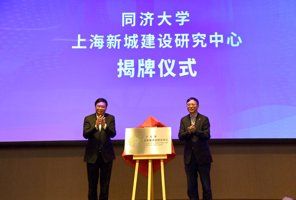 成立儀式上,湯志平、方守恩分別講話,并共同為上海新城建設(shè)研究中心揭牌。