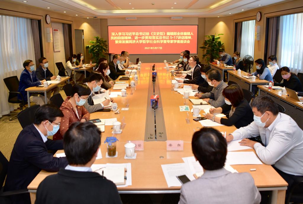 座談會上,高等教育研究所教授蔡三發,人文學院教授、《同濟大學學報》(社會科學版)常務副主編陳徽,經濟與管理學院教授陳強,藝術與傳媒學院教授李麟學,政治與國際關系學院教授門洪華,外國語學院教授吳贇,人文學院教授解學芳,法學院副教授徐鋼,馬克思主義學院教授徐蓉,經濟與管理學院教授鐘寧樺10位專家學者先后作了發言,分別圍繞總書記的重要講話和回信精神交流了學習體會,并結合各自學院、學科實際,就未來如何更好推進同濟大學哲學社會科學繁榮發展建言獻策。文科辦公室主任劉淑妍作了題為“以服務國家和民族重大需求為導向,做有擔當的哲學社會科學管理者”的發言。
