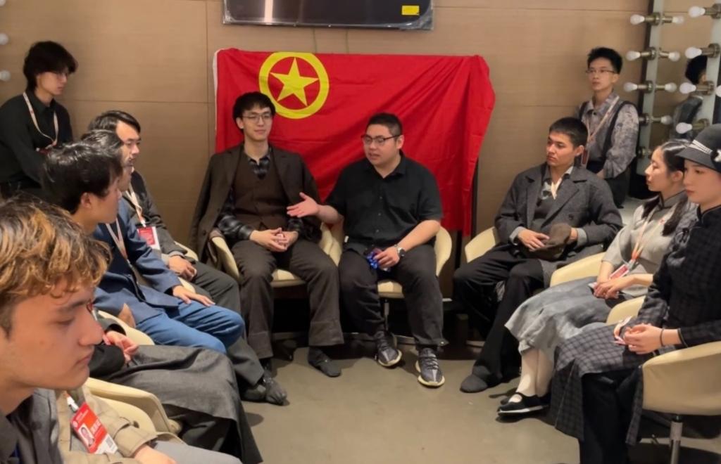 學(xué)生藝術(shù)總團學(xué)生在走臺間隙進行排練