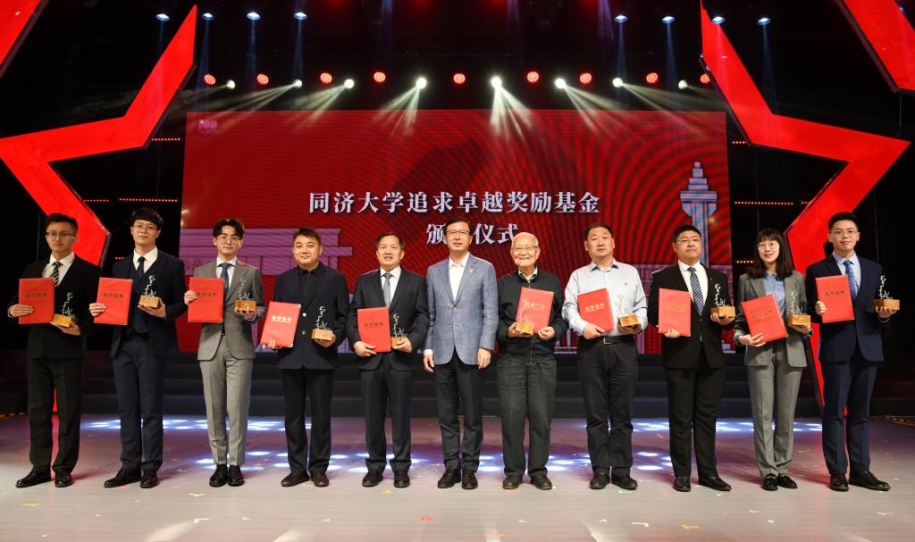 陳御(左三)被授予同濟大學2021年“追求卓越學生獎”
