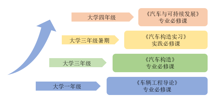 車輛工程專業(yè)課程鏈作為我校汽車學(xué)院的核心“課程樹”之一,是由多門重要課程組成的,如車輛工程導(dǎo)論、汽車構(gòu)造、汽車構(gòu)造實(shí)習(xí)、汽車與可持續(xù)發(fā)展等,這些骨干課程從一年級一直覆蓋到四年級(汽車學(xué)院學(xué)制5年),如何將這些課程浸泡到“立德樹人”的育人大海里?