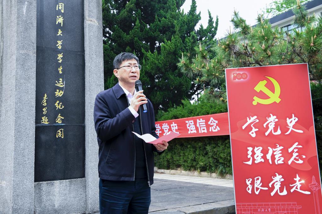 獻花后,師生還共同參觀了烈士紀念園。第四屆殷夫班成員康校博生動講述了“五卅”先鋒尹景伊、革命詩人殷夫等烈士的事跡。師生們懷著崇敬的心情,共同瞻仰革命烈士,感受同濟愛國青年的革命精神。