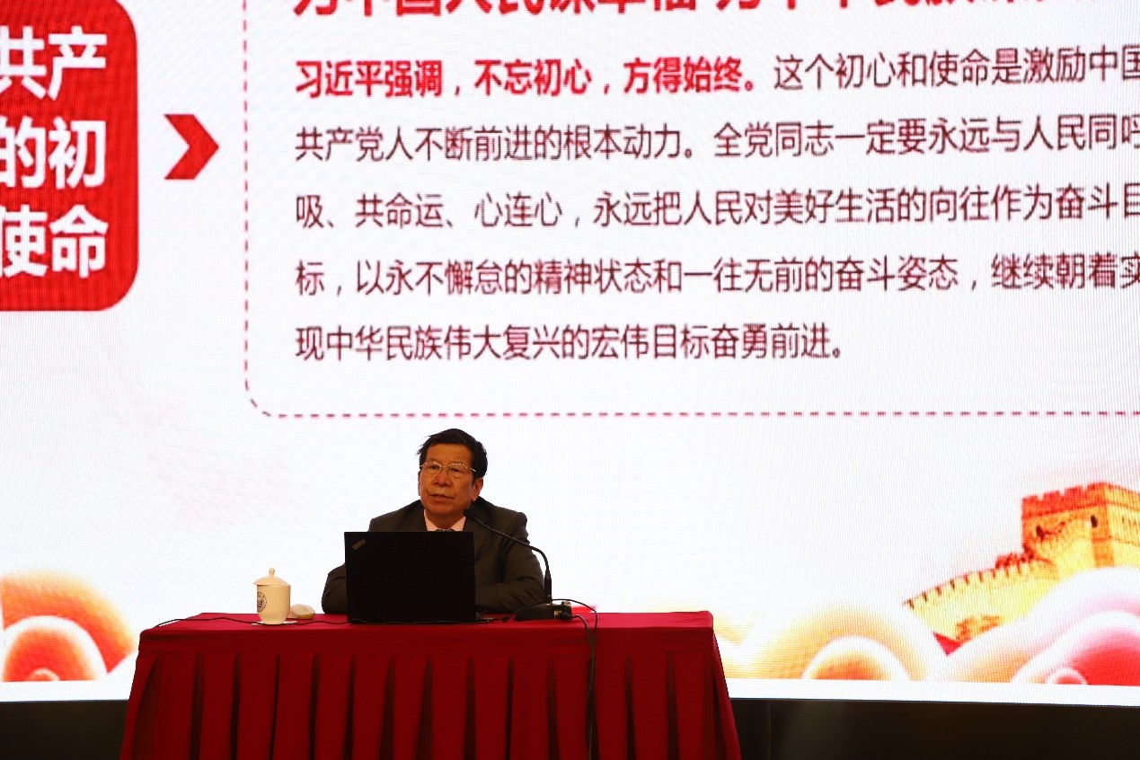 隨后,馬克思主義學(xué)院李占才教授以《以史為鏡 百年黨史映鑒共產(chǎn)黨員的初心與使命》為題,為師生作了首講報告。李占才教授以深厚的學(xué)識為師生解讀近代中國的兩大變化,并基于當(dāng)時中國的國情深入剖析近代中國的兩大主要矛盾,論述了近代中國的兩大歷史任務(wù)。他表示,為了完成“爭取民族獨立和人民解放、實現(xiàn)國家富強(qiáng)和人民幸福”這兩大歷史任務(wù),中國人民為探尋中國救亡圖存、富民強(qiáng)國之路進(jìn)行了不懈努力。他帶領(lǐng)大家回顧了當(dāng)時清政府、農(nóng)民階級、資產(chǎn)階級的一系列救國過程與失敗結(jié)局,重溫了共產(chǎn)黨的誕生及取得新民主主義革命偉大勝利的崢嶸歲月。通過李占才教授聲情并茂的講述,師生們深刻理解了何為“百年風(fēng)雨,歷史和人民選擇了中國共產(chǎn)黨”,也更加堅定了歷史和人民的選擇,誓將小我融入大我,青春獻(xiàn)給祖國,力爭建功立業(yè)新時代。(丁瑞庭)
