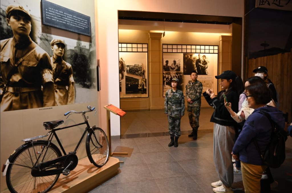 在部隊解說員的講解下,師生們對“南京路上好八連”幾十年來的發展歷史有了深入了解。從1949年5月進駐上海的“霓虹燈下的哨兵”,到1963年4月25日正式被國防部授予“南京路上好八連”光榮稱號,再到近年來與時俱進的轉變,該連隊“軍事好,如霹靂”“政治好,稱第一”“紀律好,如堅壁”“為人民,幾十年”,不斷弘揚傳統、與時俱進、科學發展。連隊永志難忘的一項項光榮事跡,如同一顆顆璀璨閃耀的星辰,幾十年始終熠熠生輝,成為照亮了人們內心的永恒光明。