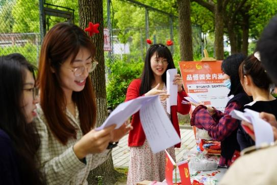 黨史故事連連看、一“棋”學黨史、紅色地圖版“大富翁”……4月20日中午,在我校四平路校區(qū)、嘉定校區(qū),學生們搭起百米紅色市集,擺開攤位,通過游戲互動,讓黨史學習“活”起來。
