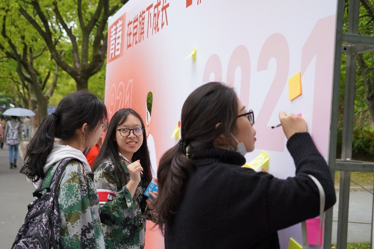此次校園百米紅色市集活動聚焦繼承英烈精神、傳承紅色基因、傳播時代聲音主題實踐,“攤主們”都是我校優(yōu)秀社會實踐團隊和理論宣講團的成員。活動中,這些“實踐先鋒”通過接地氣的“擺攤”形式開展朋輩互動,引導學生積極參與到黨史學習教育中來,深入學習了解“四史”,體悟青年擔當,續(xù)寫同濟人以史為鑒、濟世興邦的華章。同濟學子紛紛在留言墻上寫下黨旗下的成長宣言。