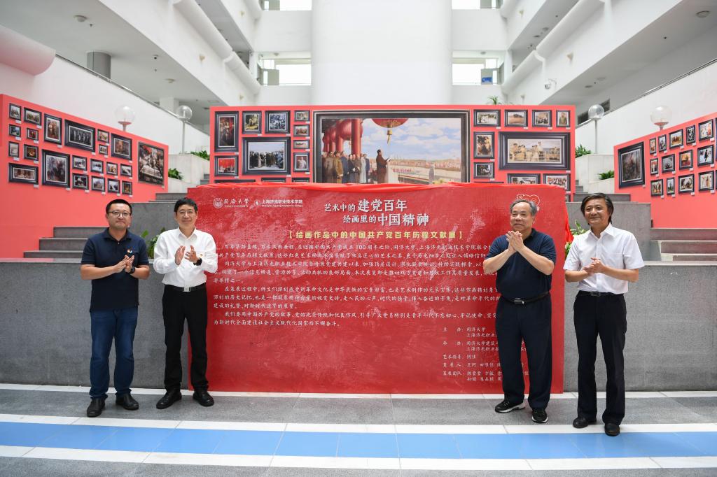 6月25日,“藝術中的建黨百年 繪畫里的中國精神——繪畫作品中的中國共產黨百年歷程文獻展”在四平路校區瑞安樓大廳揭幕。展覽由同濟大學與濟光職業技術學院(以下簡稱“濟光學院”)聯合推出。