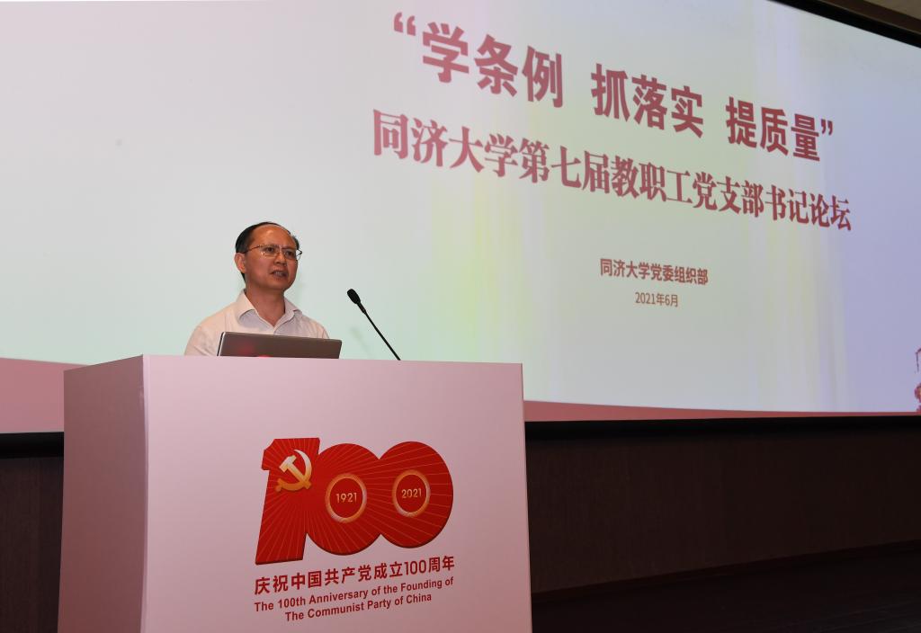 6月25日,在慶祝中國共產黨成立100周年之際,以“學條例 抓落實 提質量”為主題的同濟大學第七屆教職工黨支部書記論壇在建筑設計研究院報告廳舉行。校黨委常務副書記馮身洪出席論壇并講話,校黨委組織部負責人、全校300余位教職工黨支部書記和專職組織員參加了論壇。