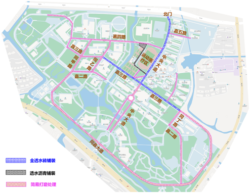 嘉定校區(qū)已正式啟用17年,人行道上原來鋪設(shè)的是小方磚,雨天濕滑,存有安全隱患。“嘉定校區(qū)人行道綠色安全改造”被列為學(xué)校今年十大實(shí)事之一。校基建處多次帶領(lǐng)設(shè)計(jì)部門實(shí)地進(jìn)行工程需求分析、方案設(shè)計(jì),明確改造目標(biāo)、范圍與改造內(nèi)容。人行道綠色安全改造工程分為三類進(jìn)行:一是對中央大道與嘉三路,采用全透水磚鋪裝作示范改造;二是對醫(yī)療運(yùn)動(dòng)區(qū)采用透水瀝青鋪裝;三是對剩余人行道區(qū)域作簡易防滑處理。當(dāng)前,三類綠色安全改造工程都在穩(wěn)步推進(jìn)中,預(yù)計(jì)于年內(nèi)竣工。